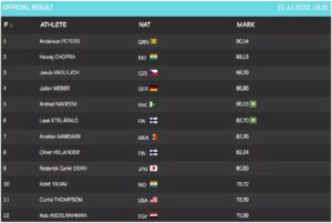 The other Indian in the fray, Rohit Yadav finished at 10th with a best throw of 78.72m. Rohit had finished 11th overall in the qualification round with a best throw of 80.42m.