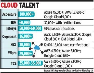 Accenture tops the list with over 1 lakh cloud professionals. It had approximately