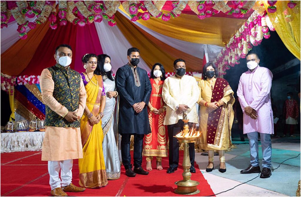 The event, hosted by the Indian High Commission, started with the lighting of the ceremonial lamp and the guests were welcomed in the traditional way by applying sindoor on their forehead.